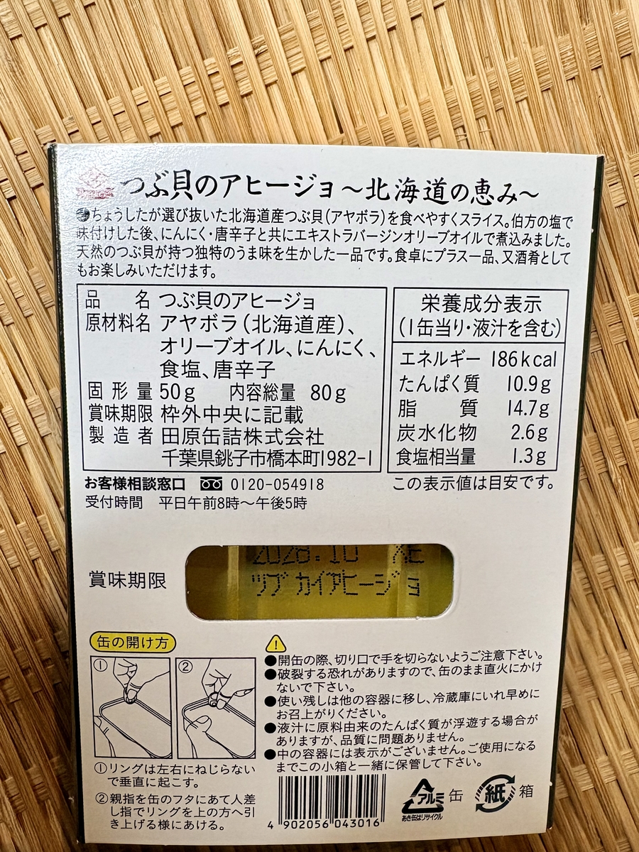 乾物・缶詰・佃煮 つぶ貝のアヒージョ缶 販売価格 430円(税込み) 会員価格 (税込み) 通常価格 (税込み) 在庫 商品コード 620316 JANコード 数量 - + カートに入れる カテゴリー 乾物・缶詰・佃煮 ツイートする シェアする 2026年04月 日 月 火 水 木 金 土 1 2 3 4 5 6 7 8 9 10 11 12 13 14 15 16 17 18 19 20 21 22 23 24 25 26 27 28 29 30 2026年05月 日 月 火 水 木 金 土 1 2 3 4 5 6 7 8 9 10 11 12 13 14 15 16 17 18 19 20 21 22 23 24 25 26 27 28 29 30 31 定休日 休業日 ショッピングガイド 特定商取引法に基づく表記 個人情報保護方針 送料について 会員規約 お問合せ